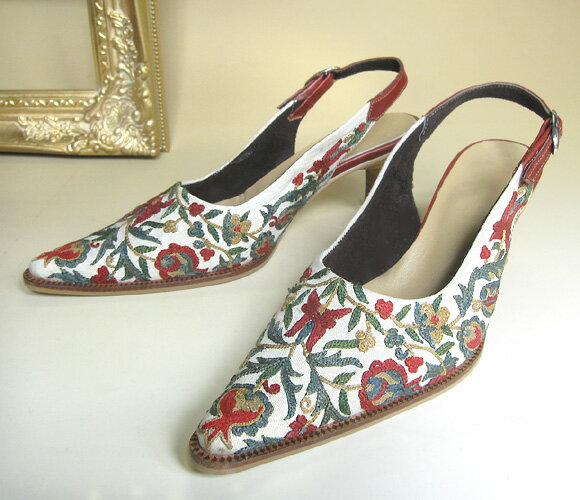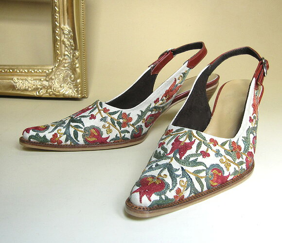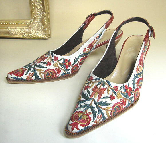 スザンニ刺繍のサンダル37(24cm)【激得_0518_F】 価格: 15,000円 レビュー評価:0.0 レビュー数:0 KEY:キリム・バッグ・アジアン雑貨・スリッパー・スリッポン・靴・革・サボ・サンダル・送料無料スザンニ刺繍のサンダルサイズ37(24cm)材 質刺繍部分/シルク糸・綿布・裏面フェルトソール部分/合皮・プラスチック・革ストラップは革で、長さ調節ができます。ヒールの高さは3cm(地面からかかとまでは7cm)です。まるで工芸品のようなサンダルです。ウズベキスタンの伝統技術、スザンニを贅沢に使用しています。深い色味のシルク糸で、全面に刺繍がほどこされ、履くのがもったいないほど…。エレガントなフォルムと、鮮やかな刺繍が目を引く一品です。 Supported by 楽天ウェブサービス |